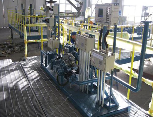 油品定量裝車(chē)橇裝組是指將每一個(gè)裝車(chē)鶴位內(nèi)的儀表和設(shè)備集成在一個(gè)專用的框架結(jié)構(gòu)內(nèi),儀表和設(shè)備包括裝車(chē)鶴管、流量計(jì)、防溢油靜電報(bào)警控制器、壓力變送器、裝車(chē)流量控制閥、緊急切斷閥,裝車(chē)泵、批量控制器等, 只預(yù)留工藝連接口和控制電源和通訊接口,這個(gè)整體集成部分稱為裝車(chē)橇。與傳統(tǒng)的裝車(chē)控制系統(tǒng)就地組裝比較,裝車(chē)橇可以節(jié)省現(xiàn)場(chǎng)設(shè)計(jì)和現(xiàn)場(chǎng)施工量,縮短項(xiàng)目工期,提高裝車(chē)控制系統(tǒng)的質(zhì)量。